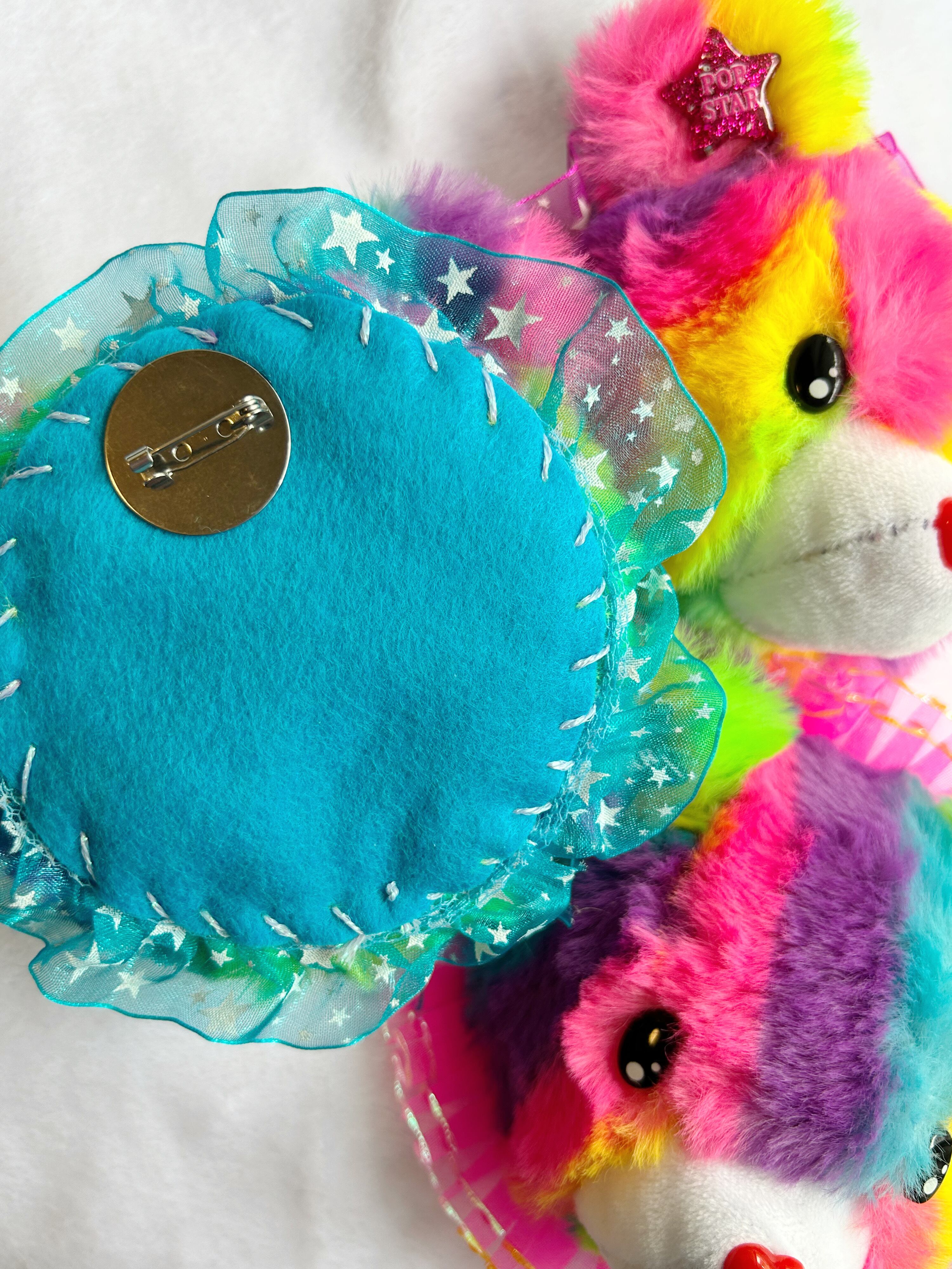 手作り感たっぷりの可愛らしいくまさんロゼットバッジです!バッジとして、カバンやお洋服に付けたら、バッジ部分にキーホルダーを通せばバッグにお付けすることも可能です✴︎日常のお出かけのお供にしてあげて下さい♡このバッジを身につけることで、日常の中にほんのりとした癒しをもたらしてくれます♡