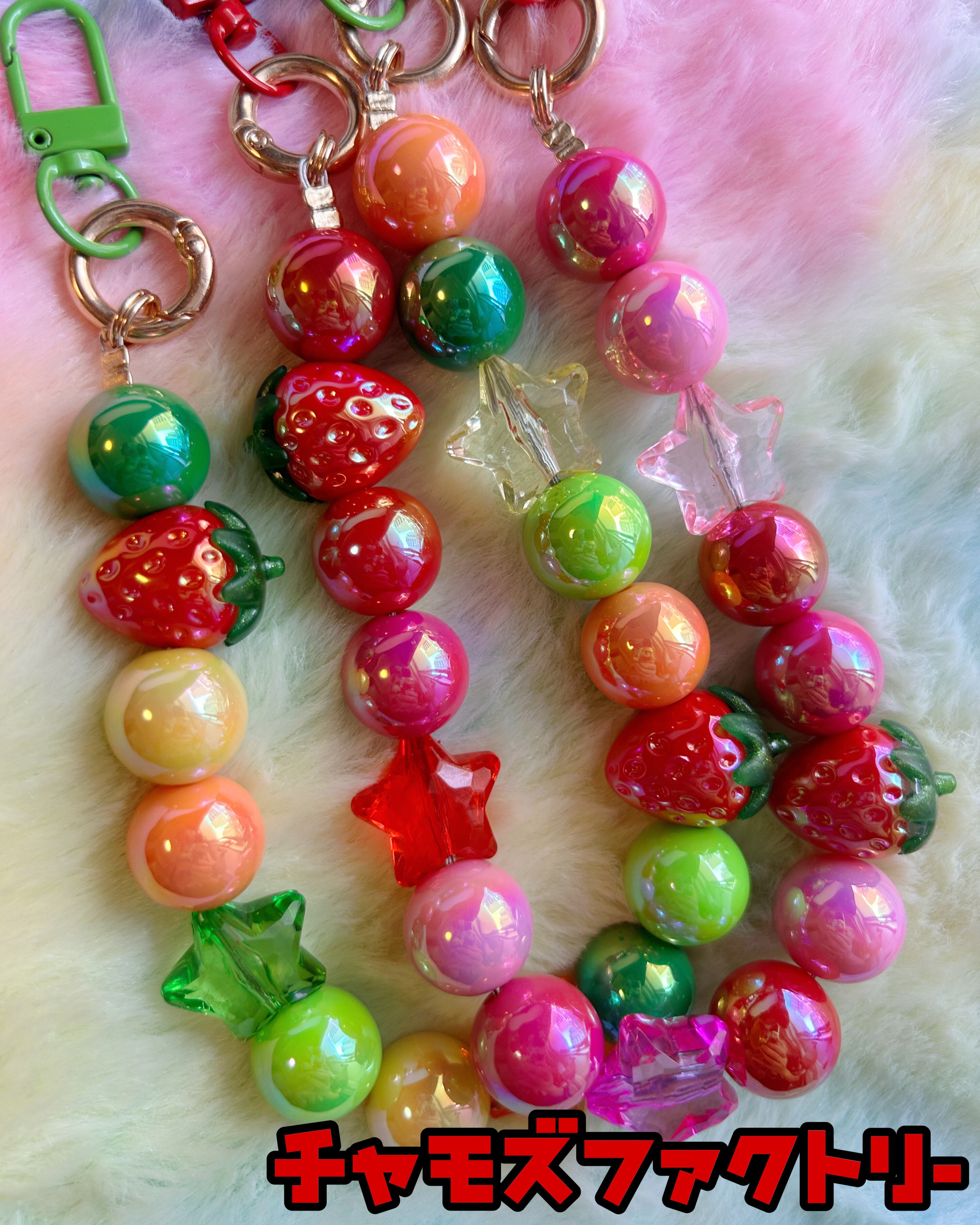 目を惹く可愛らしいデザインが魅力の「イチゴと大きめビーズの2wayストラップ」です!イチゴビーズと大きめのオーロラキラキラビーズが組み合わさり、日常に華やかさをプラスしてくれます♡