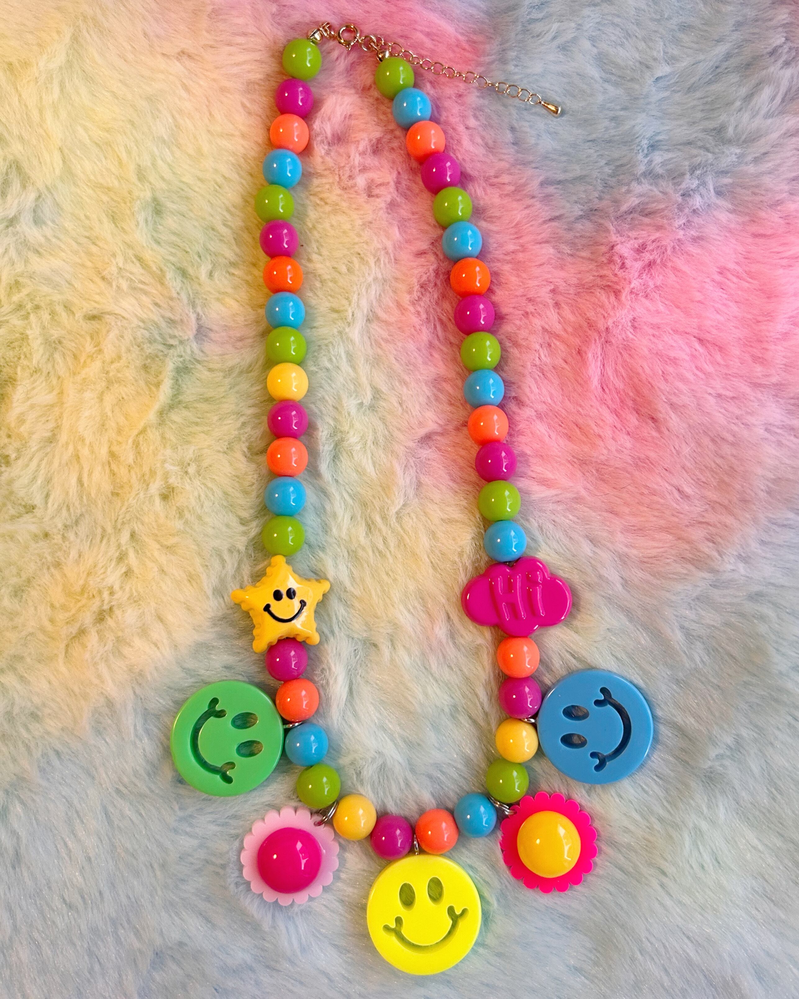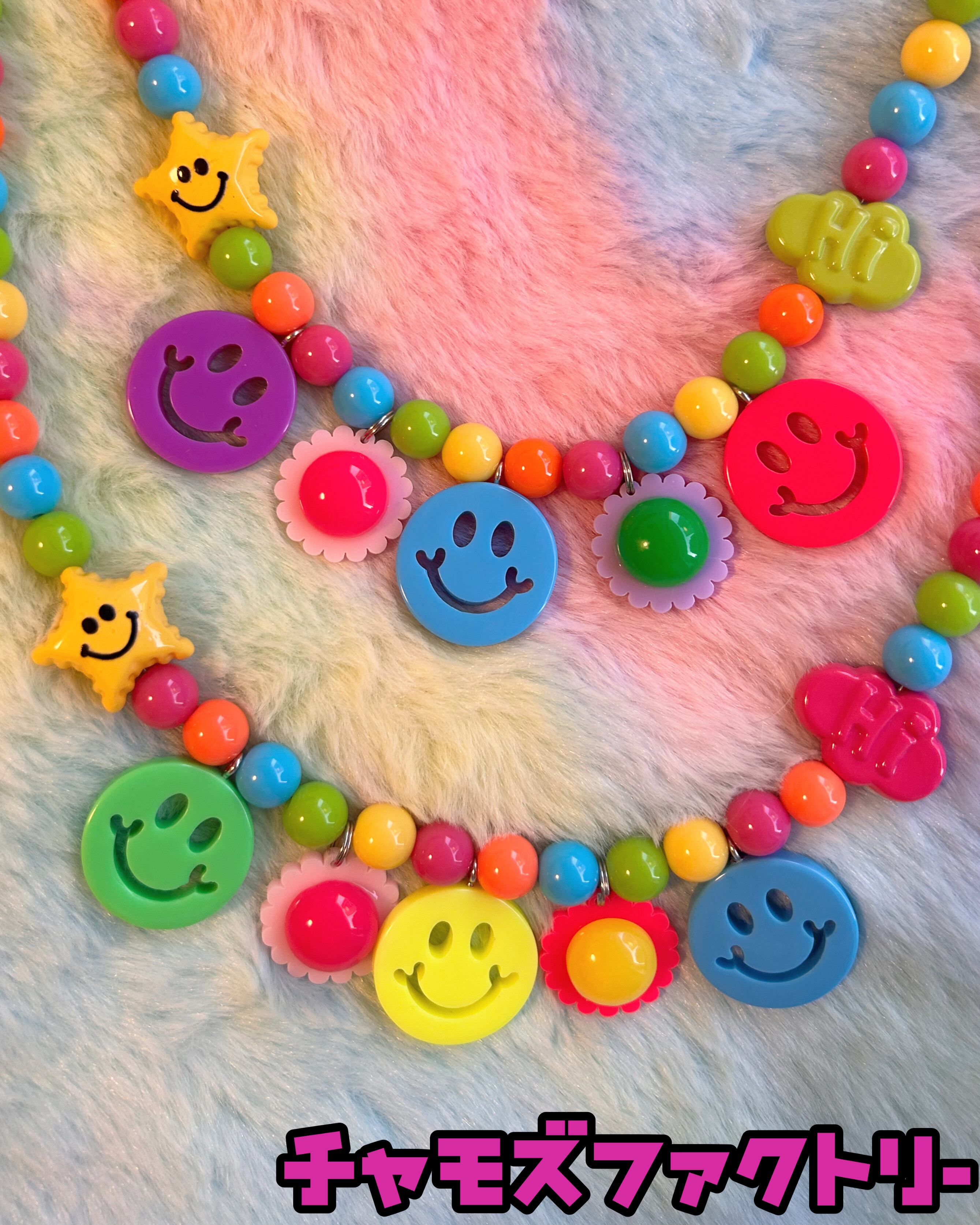 カラフルなビーズとスマイルモチーフをたっぷり詰め込んだ、見ているだけで気分が明るくなるネックレスです⭐︎