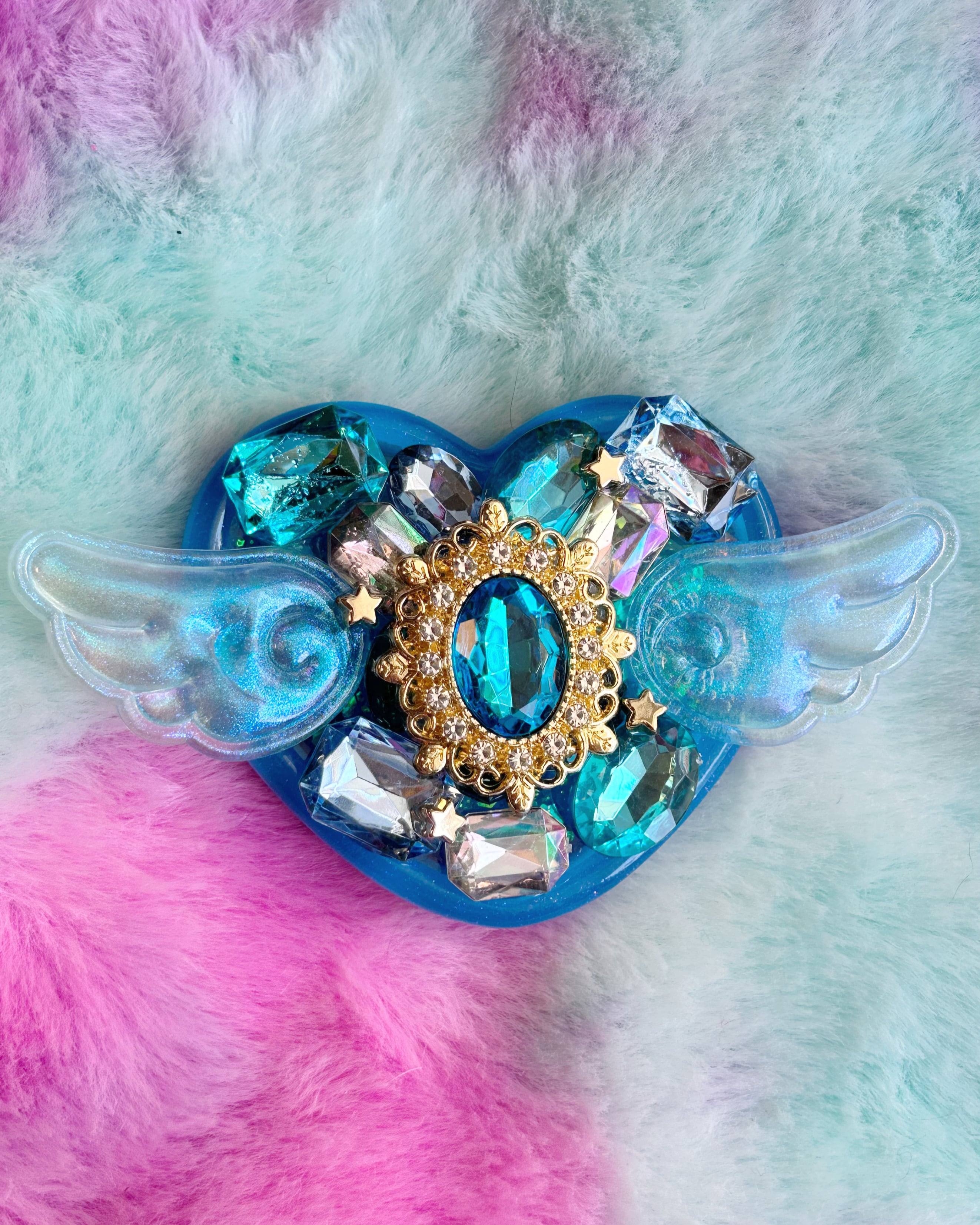 宝石を沢山詰め込んで、魔法少女のコンパクトをイメージした、スマホグリップです♡